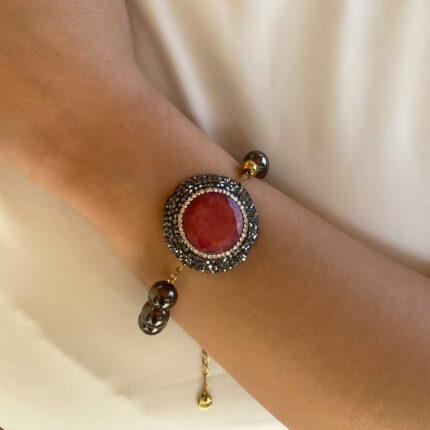 Bραχιόλι Briana με αιματίτες μαύρους αχάτη κόκκινο και στρας, κούμπωμα σε χρυσό από ανοξείδωτο ατσάλι, με προέκταση για να εφαρμόζει