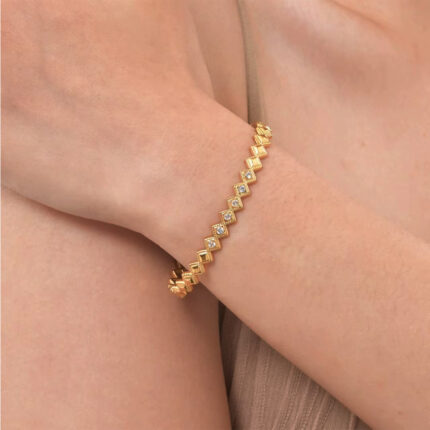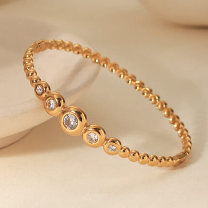 Alishia χειροπέδα με ζιργκον σε χρυσό από ανοξείδωτο ατσάλι. Συνδυάζεται με όλα τα κοσμήματα σας. Όλα τα υλικά είναι υποαλλεργικά