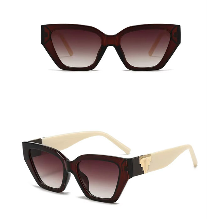Γυαλιά ηλίου abellina καφέ κρεμ με προστασία UV 400 και χρυσές μεταλλικές λεπτομέρειες. Κατασκευασμένα βάσει των προδιαγραφών ποιότητας των κανονισμών ασφάλειας της Ευρωπαϊκής Ένωσης και με πιστοποίηση CE.