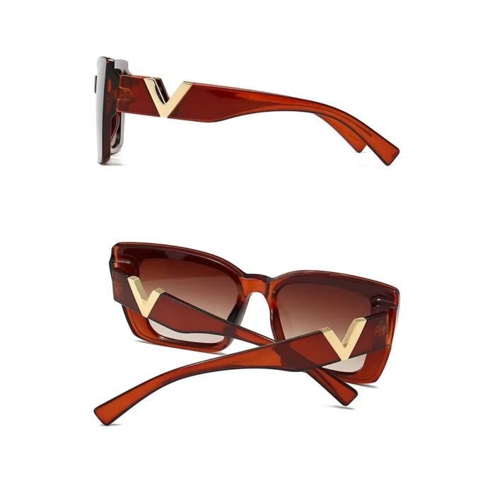 Γυαλιά ηλίου adelaide καφέ με προστασία UV 400 και χρυσές μεταλλικές λεπτομέρειες. Κατασκευασμένα βάσει των προδιαγραφών ποιότητας των κανονισμών ασφάλειας της Ευρωπαϊκής Ένωσης και με πιστοποίηση CE.