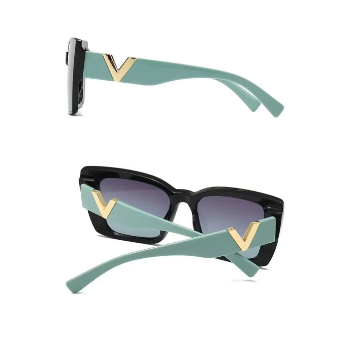 Γυαλιά ηλίου Adelaide μαύρο τυρκουαζ με προστασία UV 400 και χρυσές μεταλλικές λεπτομέρειες. Κατασκευασμένα βάσει των προδιαγραφών ποιότητας των κανονισμών ασφάλειας της Ευρωπαϊκής Ένωσης και με πιστοποίηση CE.