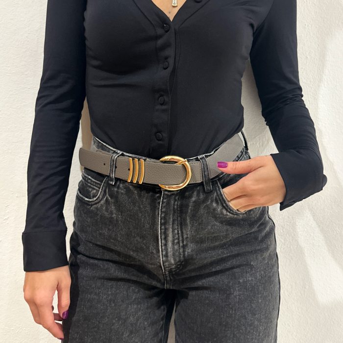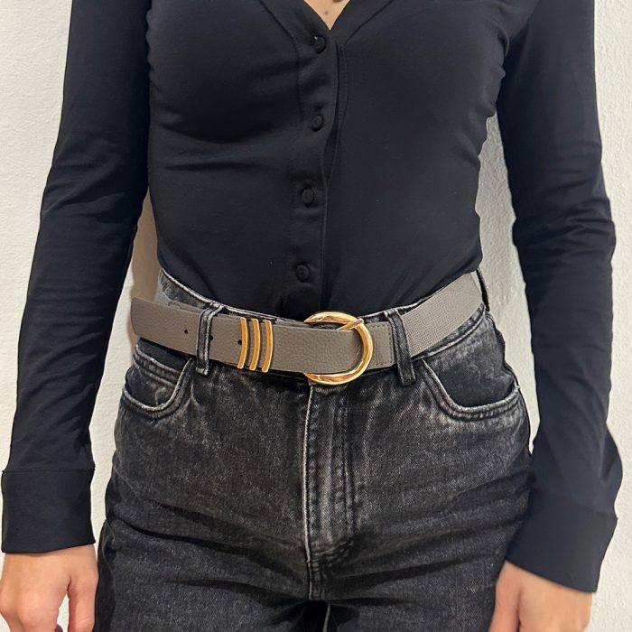 Γυναικεία ζώνη γκρι ελαστική με χρυσή αγκράφα από pu