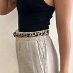 Γυναικεία ζώνη γκρι ελαστική με χρυσή αγκράφα από pu δέρμα, ελαστικότητα τεντωμένη εως 127cm, χνουδωτή στα σημεία του animal print,