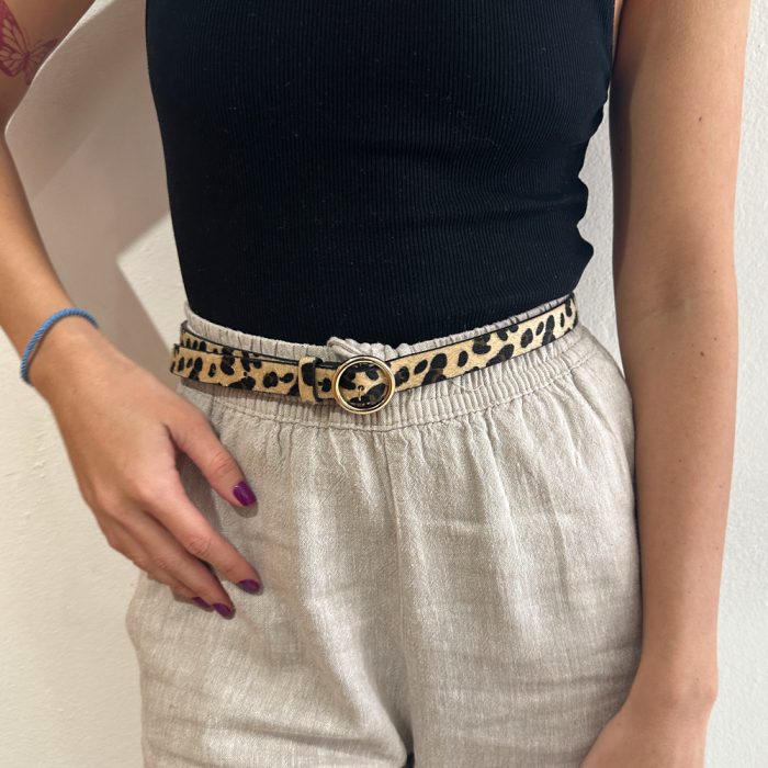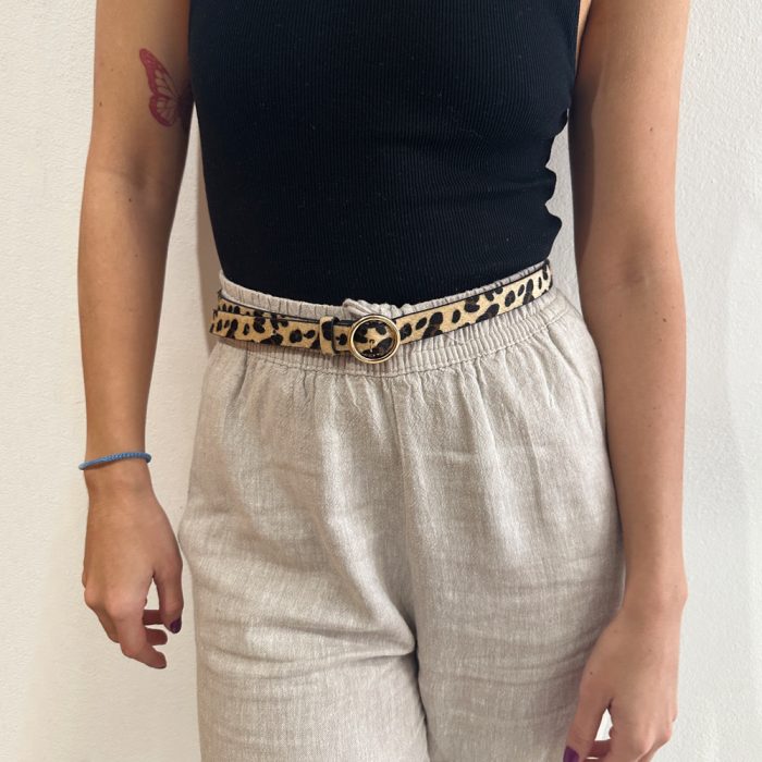 Γυναικεία ζώνη animal print με χρυσή μπρονζέ αγκράφα από pu
