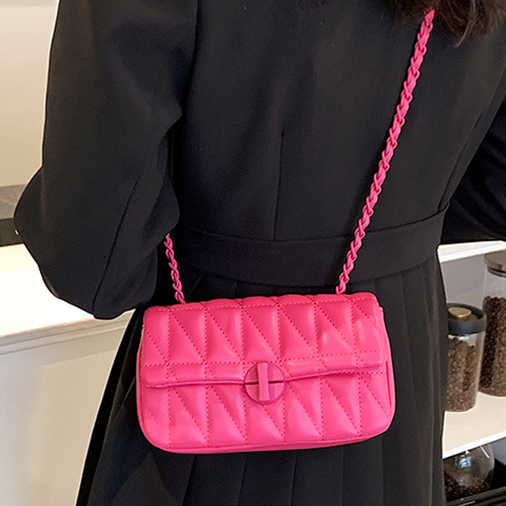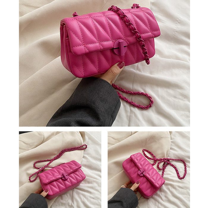 Γυναικεία τσάντα καπιτονέ mini φούξια με λουράκι αλυσίδα με πλέξη από pu δέρμα, μπορεί να φορεθεί και ώμου και χιαστί, με εσωτερική επένδυση pu δέρμα, διάσταση 19×11, ιδανική για κάθε σας έξοδο πρωινή και βραδινή!