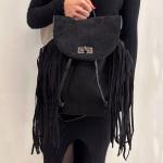 Γυναικεία τσάντα πλάτης σουετ μαύρη με κρόσσια