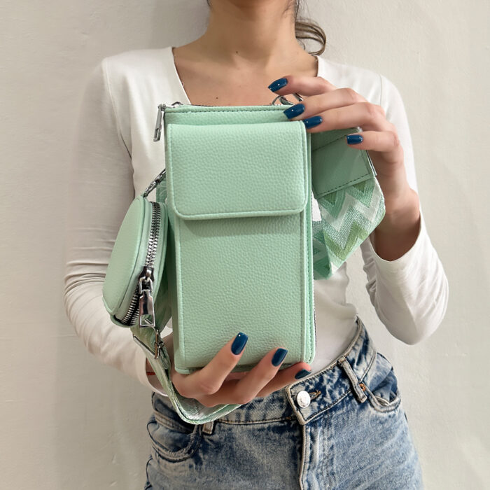Γυναικεία τσάντα φυστικί με ιμάντα για να φοριέται χιαστί, με ασημί λεπτομέρειες. Κλείσιμο με φερμουάρ, θήκη για κινητό θήκες για κάρτες κλεισιμο9 με φερμουάρ και ξεχωριστό πορτοφόλι για κέρματα. Απο εξαιρετικής ποιότητας pu τεχνόδερμα. Το πιο εντυπωσιακό τσαντάκι που θα κρατήσετε ποτε και θα τραβήξει ολα τα βλέμματα. Μια επιλογή εξαιρετικής κομψότητας και design για κάθε σας βραδινή έξοδο.