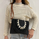 Τσάντα ώμου στρόγγυλη μαύρη από PU δέρμα