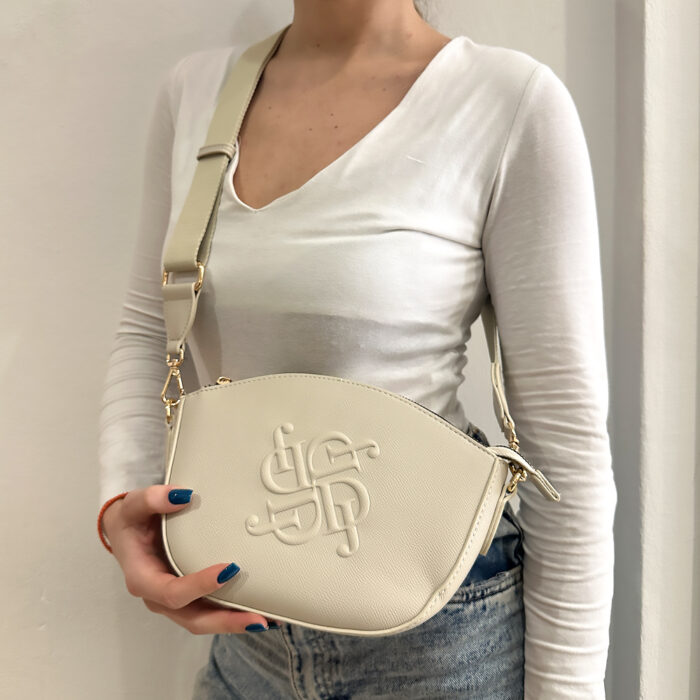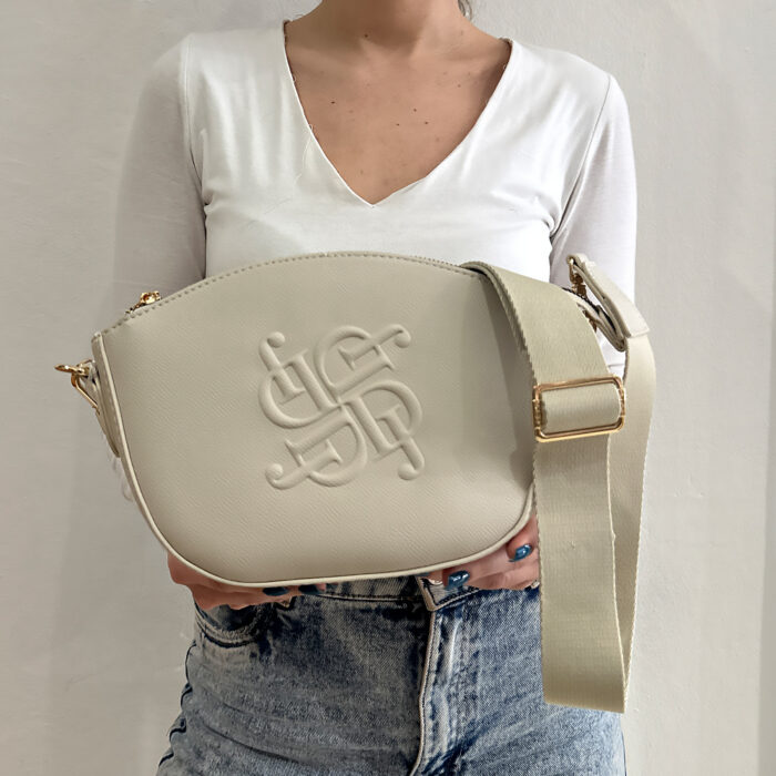 Γυναικεία τσάντα DAVID JONES εκρού με ιμάντα για να φοριέται και χιαστί, με χρυσές λεπτομέρειες. Κλείσιμο με φερμουάρ, εσωτερική θήκη και ιδιαίτερο κούμπωμα. Απο εξαιρετικής ποιότητας pu τεχνόδερμα. Το πιο εντυπωσιακό τσαντάκι που θα κρατήσετε ποτε και θα τραβήξει ολα τα βλέμματα. Μια επιλογή εξαιρετικής κομψότητας και design για κάθε σας βραδινή έξοδο.