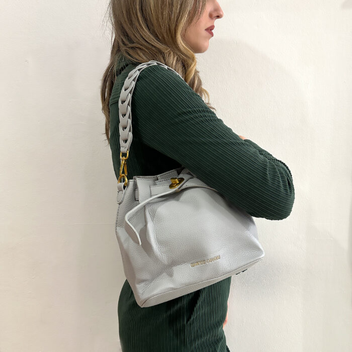 Γυναικεία τσάντα enrico coveri πουγκί gray. Δεύτερο τσαντάκι εσωτερικό με λουρί πλεκτό και δεύτερο λουρί με αυξομείωση για να μπορεί να φορεθεί χιαστί, κούμπωμα χρυσό. Εσωτερική θήκη με φερμουάρ. Ιταλική τσάντα απο εξαιρετικής ποιότητας pu τεχνόδερμα. Το πιο εντυπωσιακό τσαντάκι που θα κρατήσετε ποτε και θα τραβήξει ολα τα βλέμματα. Μια επιλογή εξαιρετικής κομψότητας και design για κάθε σας έξοδο.