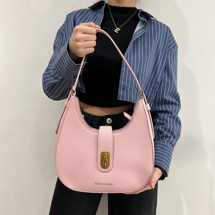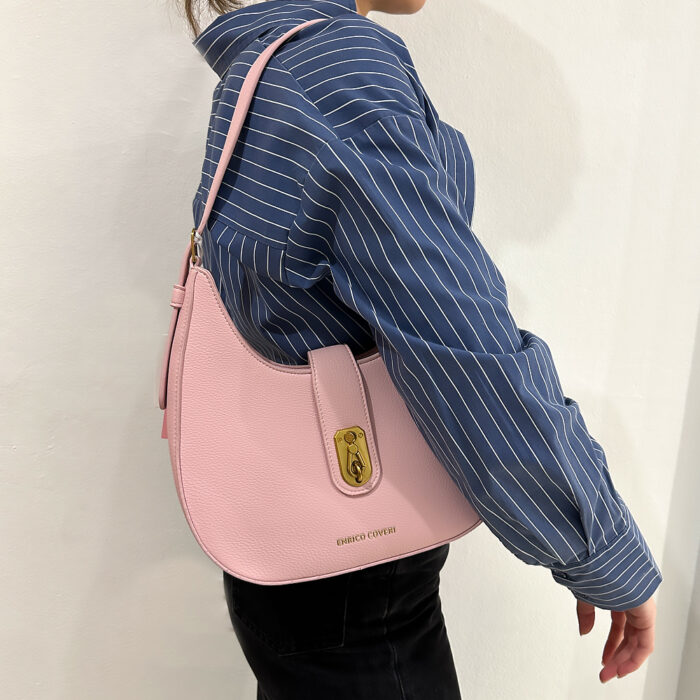 Γυναικεία τσάντα enrico coveri pink με αυξομείωση στο λουράκι ώμου, κούμπωμα με φερμουάρ και επιπλέον κούμπωμα με ιδιαίτερο γαντζάκι, με χρυσές λεπτομέρειες. Εσωτερική θήκη με φερμουάρ. Ιταλική τσάντα απο εξαιρετικής ποιότητας pu τεχνόδερμα. Το πιο εντυπωσιακό τσαντάκι που θα κρατήσετε ποτε και θα τραβήξει ολα τα βλέμματα. Μια επιλογή εξαιρετικής κομψότητας και design για κάθε σας έξοδο.