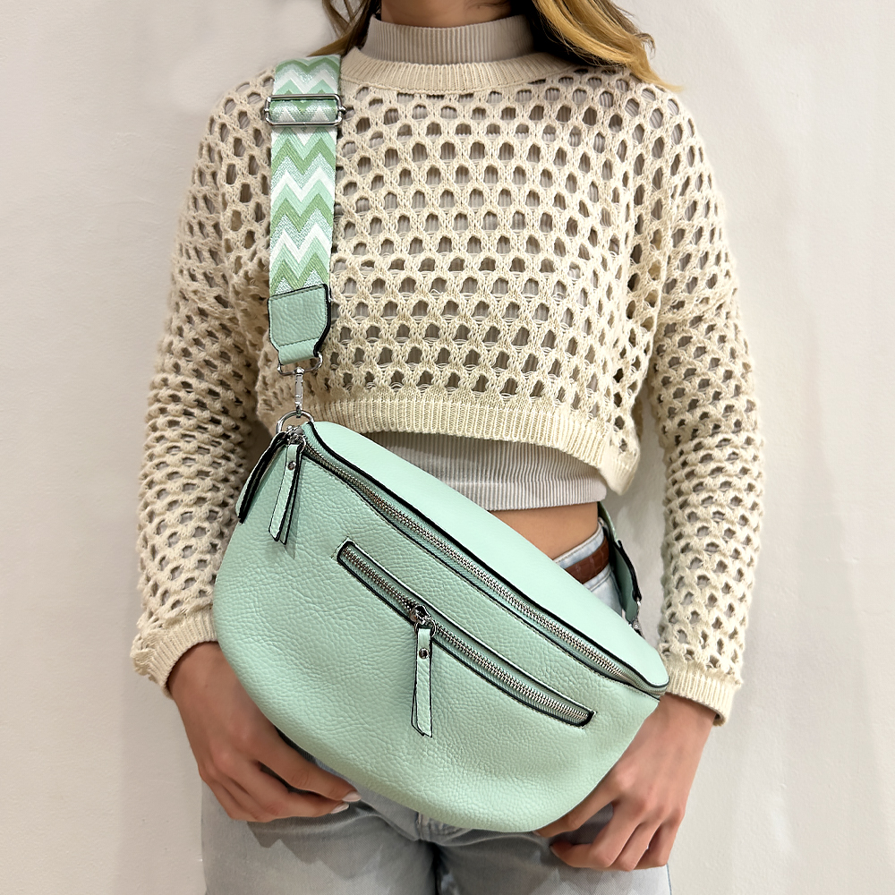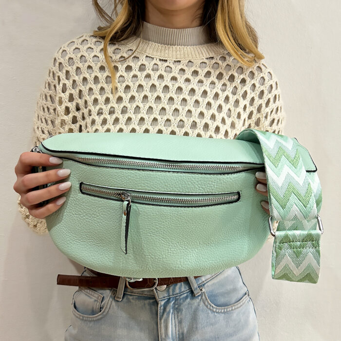 Γυναικεία τσάντα ersa χρώμα μέντας, απο pu τεχνόδερμα με ιμάντα και πορτοφολάκι μαζί με ασημί λεπτομέρειες. Κλείσιμο με φερμουάρ, φερμουάρ και εξωτερικά εσωτερική θήκη. Το πιο εντυπωσιακό τσαντάκι που θα κρατήσετε ποτε και θα τραβήξει ολα τα βλέμματα. Μια επιλογή εξαιρετικής κομψότητας και design για κάθε σας  έξοδο.