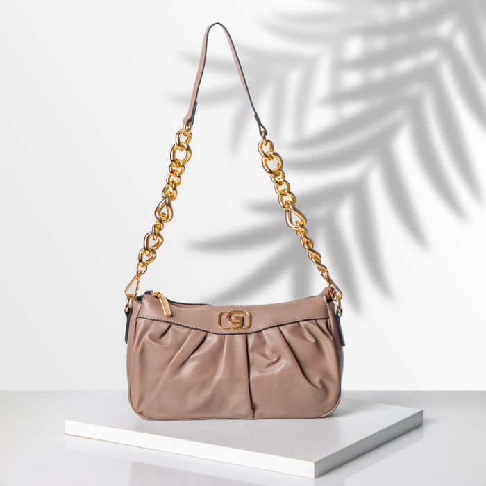 Γυναικεία τσάντα gold&gold σε μπεζ χρώμα με χρυσή αλυσίδα από pu δέρμα, μπορεί να φορεθεί και ώμου και χιαστί με αλυσίδα χρυσή και λουρί στο ίδιο χρώμα και αυξομείωση στο ύψος που θέλετε, ευρύχωρη με εσωτερική επένδυση και θήκη εσωτερικά με φερμουάρ. Μια επιλογή για όλες τις ώρες της ημέρας. Διάσταση 25Χ15cm