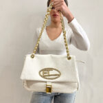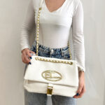 Γυναικεία τσάντα regina schrecker strass άσπρη, από εξαιρετικής ποιότητας pu δέρμα. Ιταλική τσάντα με λογότυπο με στρας, κλείσιμο με φερμουάρ και κλιπ. Mε αλυσίδα πλεκτή με pu, μπορεί να φορεθεί ώμου και χιαστί. Εσωτερική υφασμάτινη επένδυση και εσωτερικό φερμουάρ και θήκη. Εντυπωσίασε σε κάθε σου καλοκαιρινή εμφάνιση. Μια επιλογή εξαιρετικής ποιότητας για όλες τις ώρες της ημέρας και για όλες τις καλοκαιρινές σας αποδράσεις.