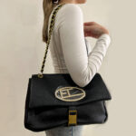 Γυναικεία τσάντα ώμου cute μαύρη με φερμουάρ
