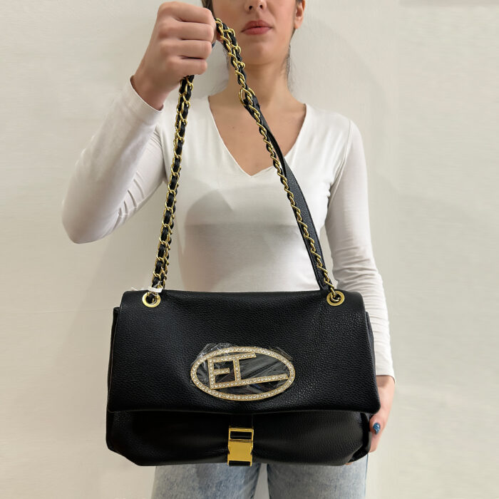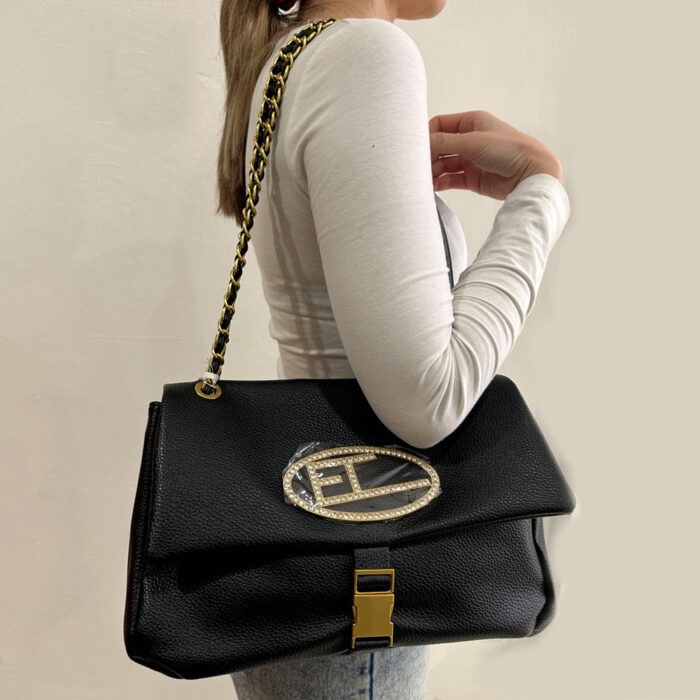 Γυναικεία τσάντα regina schrecker strass άσπρη μαύρη, από εξαιρετικής ποιότητας pu δέρμα. Ιταλική τσάντα με λογότυπο με στρας, κλείσιμο με φερμουάρ και κλιπ. Mε αλυσίδα πλεκτή με pu, μπορεί να φορεθεί ώμου και χιαστί. Εσωτερική υφασμάτινη επένδυση και εσωτερικό φερμουάρ και θήκη. Εντυπωσίασε σε κάθε σου καλοκαιρινή εμφάνιση. Μια επιλογή εξαιρετικής ποιότητας για όλες τις ώρες της ημέρας και για όλες τις καλοκαιρινές σας αποδράσεις.