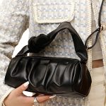 Γυναικεία τσάντα μαύρη με χερούλι πλεξίδα από pu δέρμα, μπορεί να φορεθεί και ώμου και χιαστί, με εσωτερική επένδυση pu