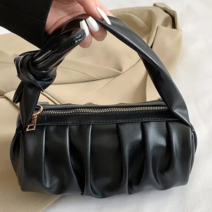 Γυναικεία τσάντα μαύρη με χερούλι πλεξίδα από pu δέρμα, μπορεί να φορεθεί και ώμου και χιαστί, με εσωτερική επένδυση pu