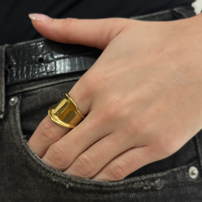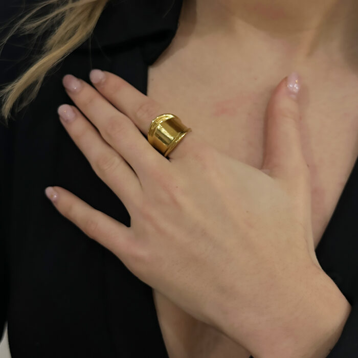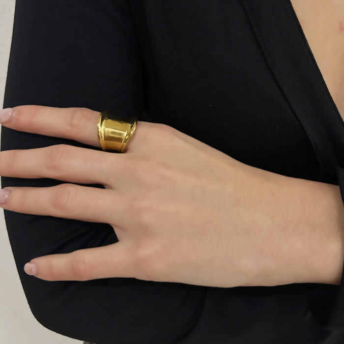 Δαχτυλίδι aci χρυσό απο ανοξείδωτο ατσάλι, με άνοιγμα για εφαρμόζει σε όλα τα δάχτυλα. Όλα τα υλικά είναι υποαλλεργικά και δεν μαυρίζουν. Κάθε κόσμημα από το κατάστημά μας κατασκευάζεται και επιλέγεται από εμάς για εσάς με αγάπη. Γι’ αυτό το κάθε κόσμημα που επιλέγετε, σας έρχεται σε κουτί συσκευασίας δώρου από το tesera.gr!