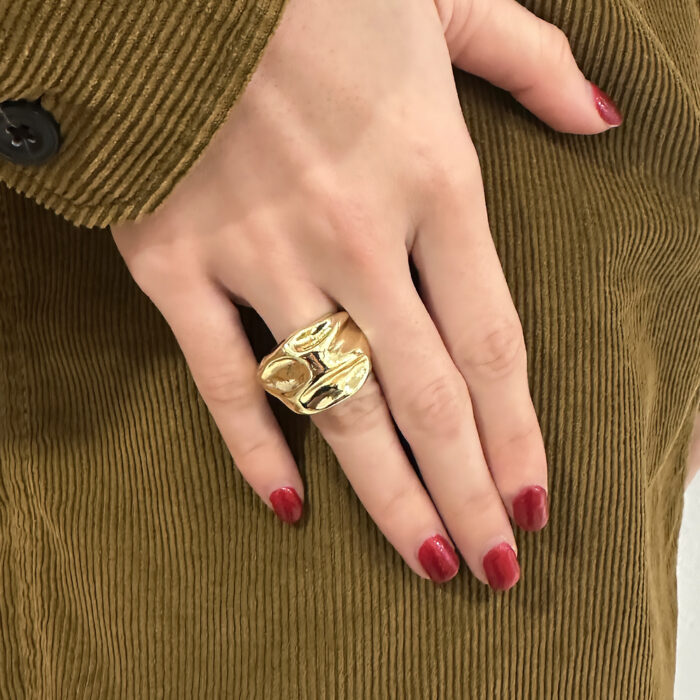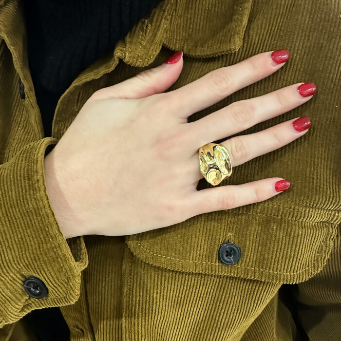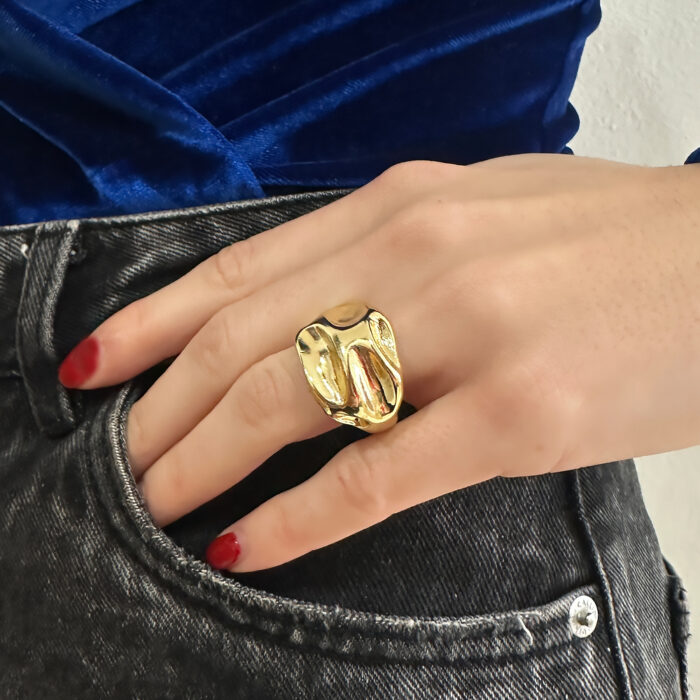 Δαχτυλίδι adriana σε χρυσό απο ανοξείδωτο ατσάλι, με άνοιγμα για εφαρμόζει σε όλα τα δάχτυλα. Όλα τα υλικά είναι υποαλλεργικά και δεν μαυρίζουν. Κάθε κόσμημα από το κατάστημά μας κατασκευάζεται και επιλέγεται από εμάς για εσάς με αγάπη. Γι’ αυτό το κάθε κόσμημα που επιλέγετε, σας έρχεται σε κουτί συσκευασίας δώρου από το tesera.gr!