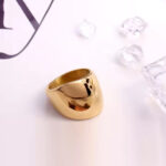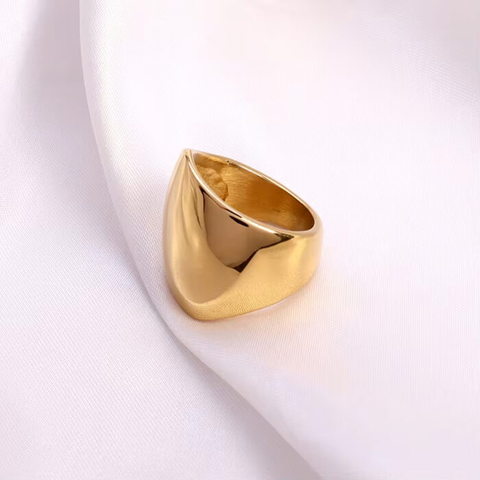 Δαχτυλίδι acilia στρογγυλό χρυσό απο ανοξείδωτο ατσάλι, με σχέδιο ασύμμετρο στο πάνω μέρος και άνοιγμα για εφαρμόζει σε όλα τα