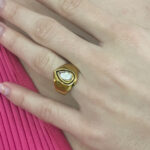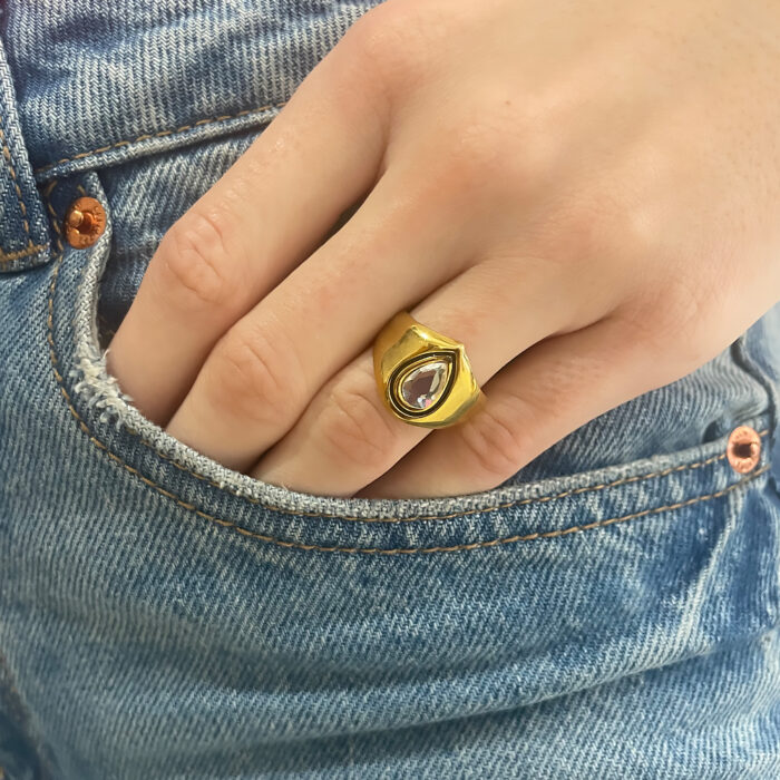 Δαχτυλίδι amelia σε χρυσό με φεγγαρόπετρα και άνοιγμα από 925 ασήμι, με άνοιγμα για να εφαρμόζει σε όλα τα δάχτυλα.
