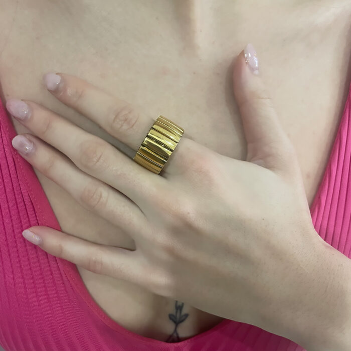 Δαχτυλίδι gloria χρυσό απο ανοξείδωτο ατσάλι, ελαστικό άνοιγμα δυνατότητα απο no9 – no15, εφαρμόζει σε όλα τα δάχτυλα. Όλα τα υλικά είναι υποαλλεργικά και δεν μαυρίζουν. Κάθε κόσμημα από το κατάστημά μας κατασκευάζεται και επιλέγεται από εμάς για εσάς με αγάπη. Γι’ αυτό το κάθε κόσμημα που επιλέγετε, σας έρχεται σε κουτί συσκευασίας δώρου από το tesera.gr!
