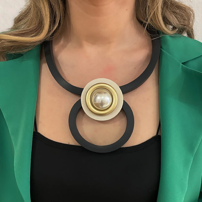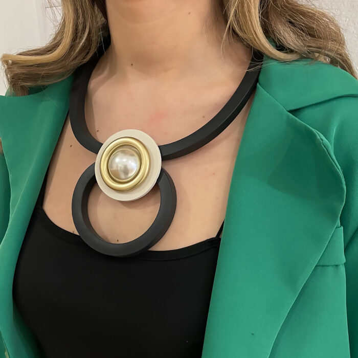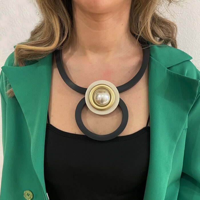 Κολιέ Agapis απο καουτσούκ με μεγάλη πέρλα στο κέντρο, με μαγνητικό κούμπωμα. Η πιο μοντέρνα σειρά κοσμημάτων που θα απογειώσει κάθε σας outfit. Ξεχώρισε σε κάθε σου εμφάνιση με την νέα συλλογή κοσμημάτων απο teseragr. Κάθε κόσμημα από το κατάστημά μας κατασκευάζεται και επιλέγεται από εμάς για εσάς με αγάπη. Γι’ αυτό το κάθε κόσμημα που επιλέγετε, σας έρχεται σε κουτί συσκευασίας δώρου από το tesera.gr!
