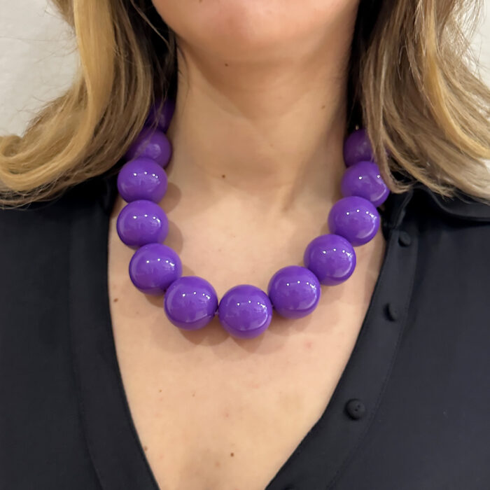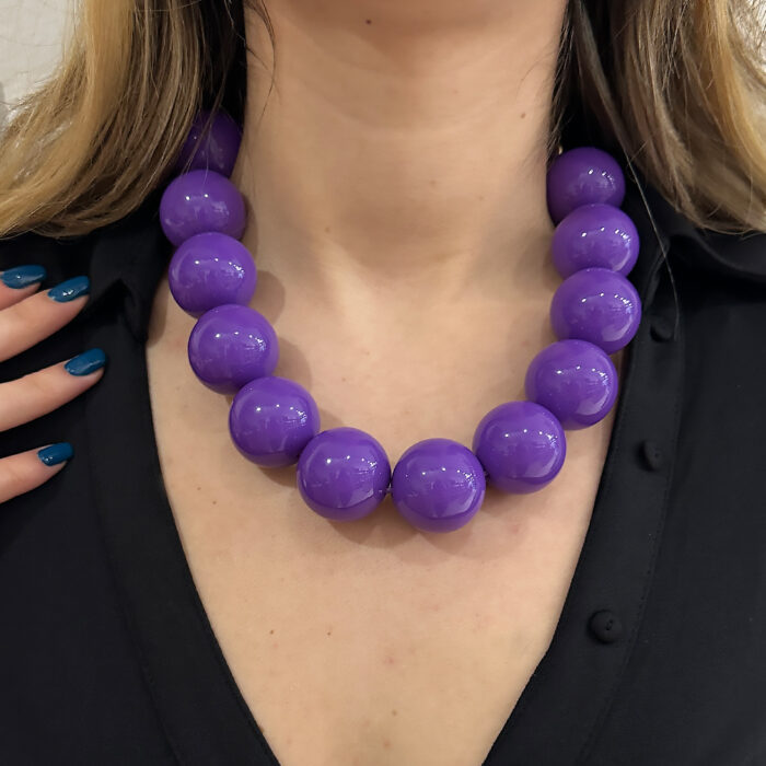 Κολιέ Alishia purple με μεγάλες πέρλες 4cm και επέκταση στο κούμπωμα για να εφαρμόζεται στο ύψος που θέλετε. Η πιο μοντέρνα σειρά κοσμημάτων που θα απογειώσει κάθε σας outfit. Ξεχώρισε σε κάθε σου εμφάνιση με την νέα συλλογή κοσμημάτων απο teseragr. Κάθε κόσμημα από το κατάστημά μας κατασκευάζεται και επιλέγεται από εμάς για εσάς με αγάπη. Γι’ αυτό το κάθε κόσμημα που επιλέγετε, σας έρχεται σε κουτί συσκευασίας δώρου από το tesera.gr!