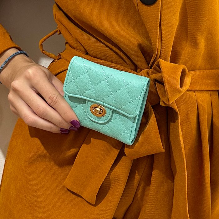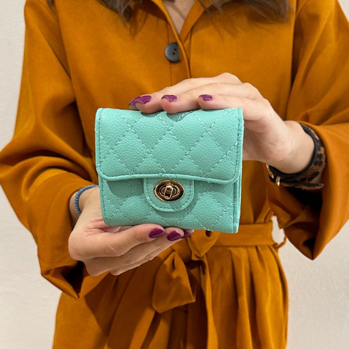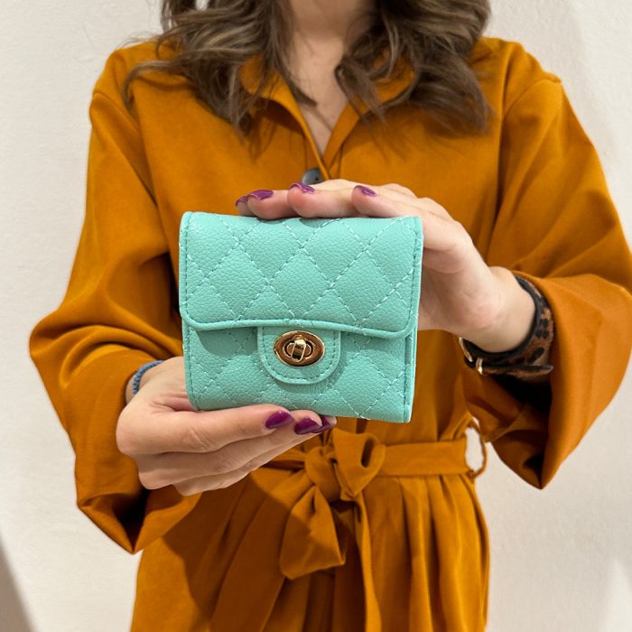 Πορτοφόλι τυρκουαζ καπιτονέ με χρυσό κούμπωμα