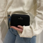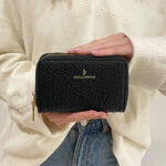 Πορτοφόλι regina schrecker χρώμα μαύρο με χρυσές λεπτομέρειες. Κλείνει εξωτερικά με χρυσά φερμουάρ 2 θέσεων και χρυσό λογότυπο. Εσωτερικές θήκες για κάρτες, ταυτότητα, κέρματα και χαρτονομίσματα. Ιταλικής κατασκευής, κατασκευασμένο από εξαιρετικής ποιότητας pu τεχνόδερμα.