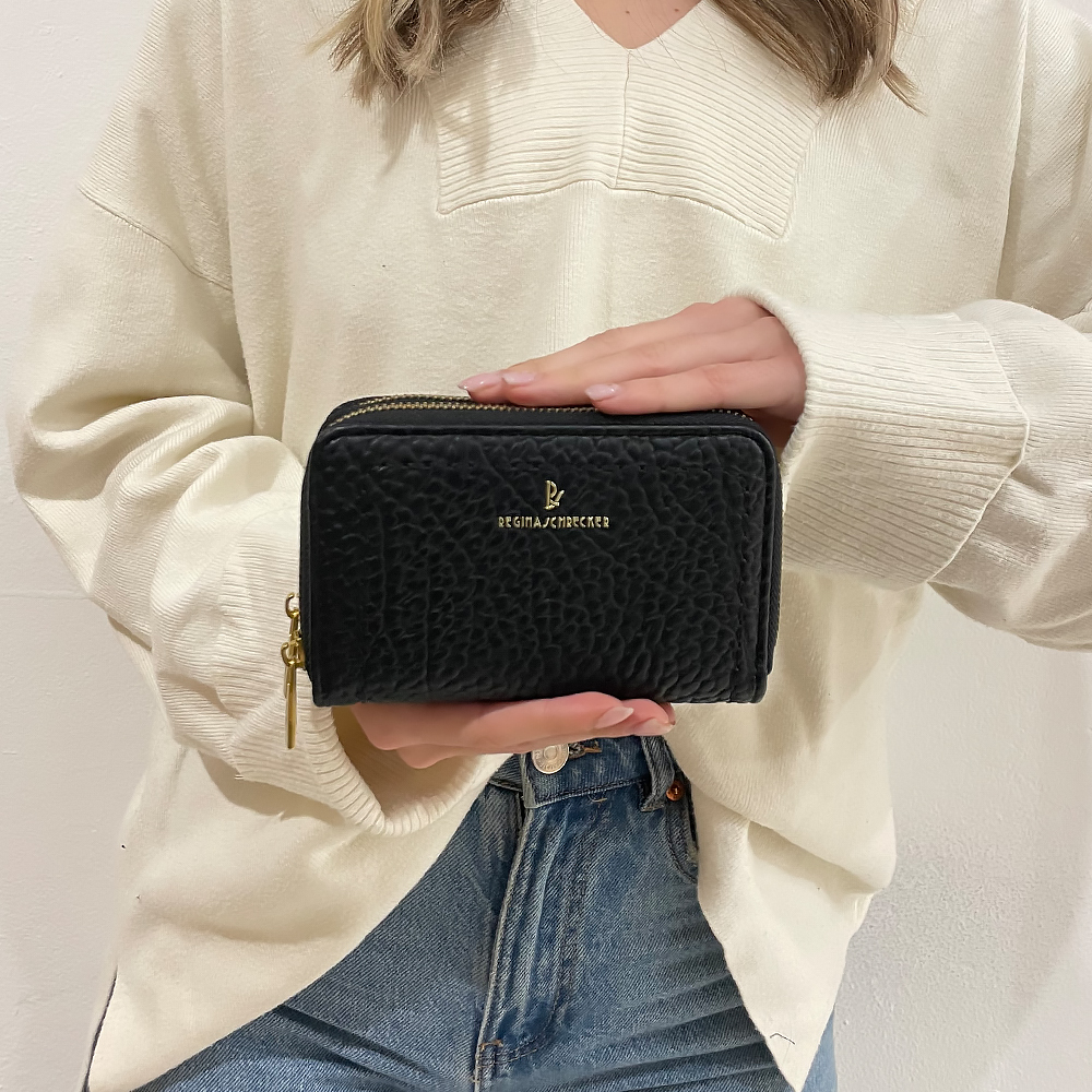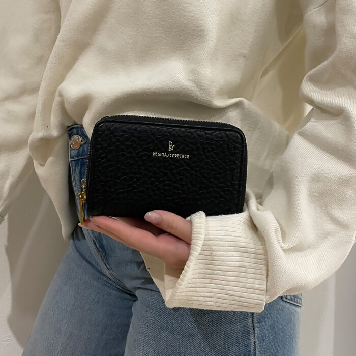 Πορτοφόλι regina schrecker χρώμα μαύρο με χρυσές λεπτομέρειες