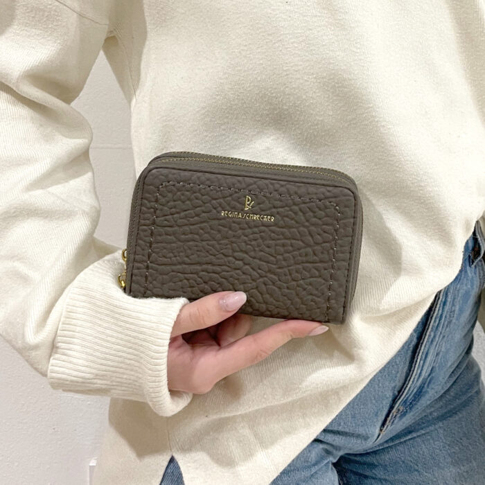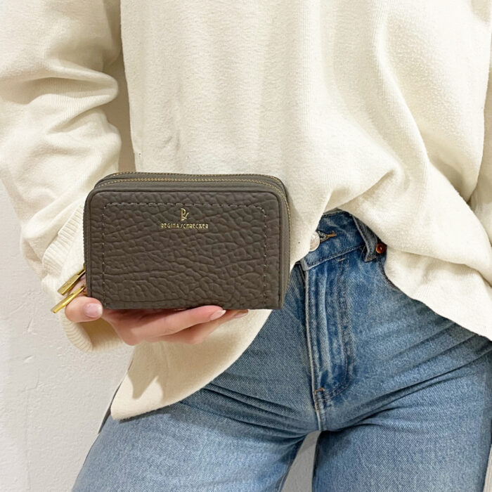 Πορτοφόλι regina schrecker χρώμα πούρο με χρυσές λεπτομέρειες. Κλείνει εξωτερικά με χρυσά φερμουάρ 2 θέσεων και χρυσό λογότυπο. Εσωτερικές θήκες για κάρτες, ταυτότητα, κέρματα και χαρτονομίσματα. Ιταλικής κατασκευής, κατασκευασμένο από εξαιρετικής ποιότητας pu τεχνόδερμα.