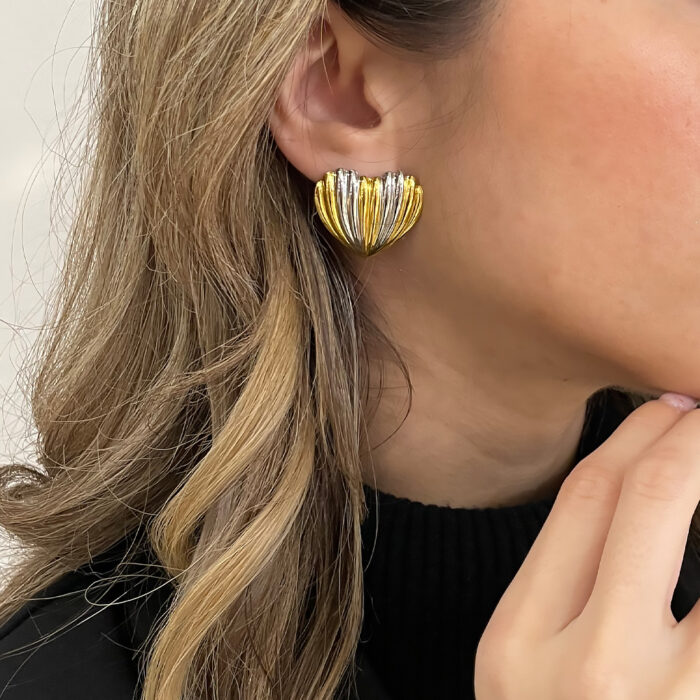 Σκουλαρίκια abelin καρδιά σε χρυσό ασημί από ανοξείδωτο ατσάλι