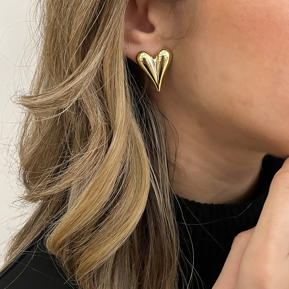 Σκουλαρίκια acillma καρδιά σε χρυσό ανοξείδωτο ατσάλι
