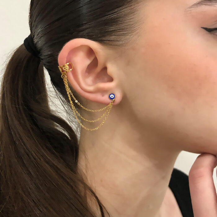 Σκουλαρίκι ear cuff διπλό σε χρυσό από ανοξείδωτο ατσάλι. Όλα τα υλικά είναι υποαλλεργικά και δεν μαυρίζουν. Κάθε κόσμημα από το κατάστημά μας κατασκευάζεται και επιλέγεται από εμάς για εσάς με αγάπη. Γι’ αυτό το κάθε κόσμημα που θα επιλέξετε, θα σας έρχεται σε κουτί συσκευασίας δώρου από το tesera.gr!