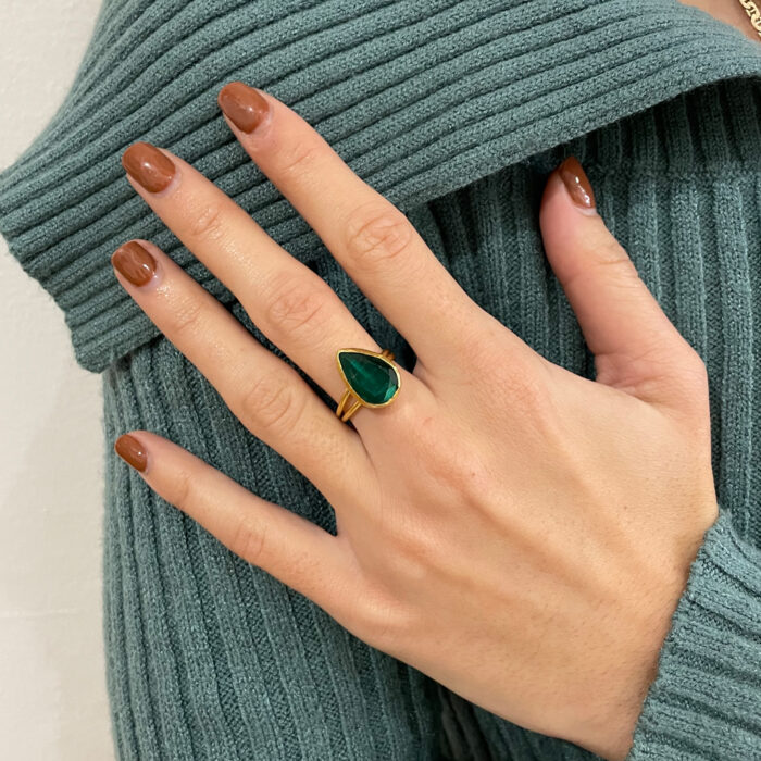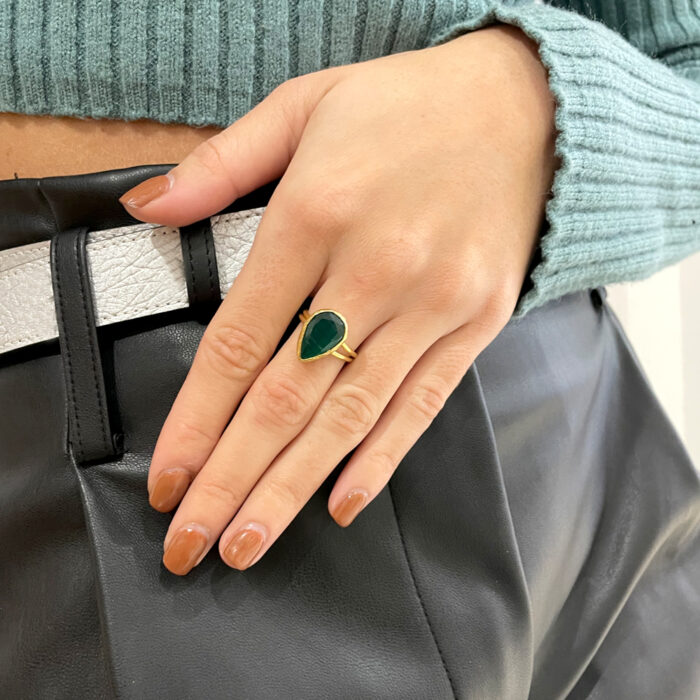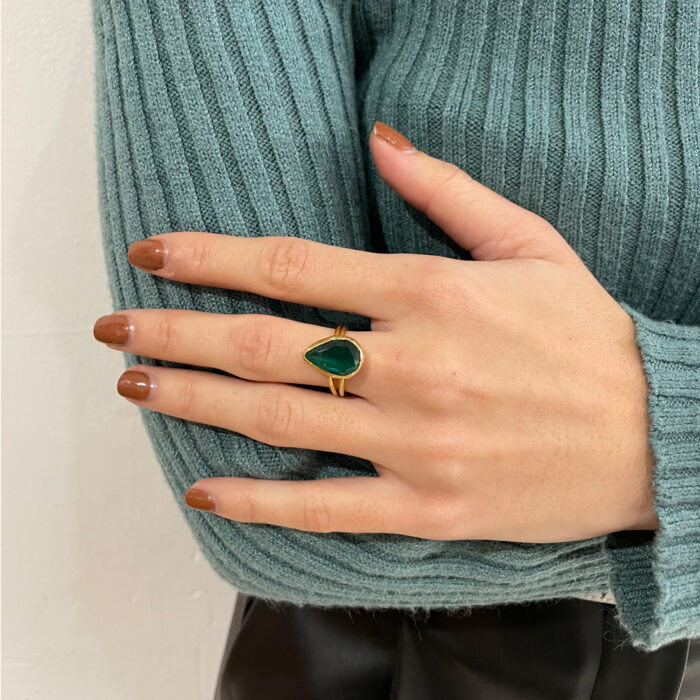 Χειροποίητο δαχτυλίδι alkistis με κρύσταλλο δάκρυ πράσινο σε χρυσό