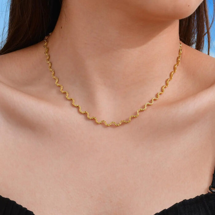 Kολιέ αλυσίδα στριφτή 0,3cm σε χρυσό από ανοξείδωτο ατσάλι. Όλα τα υλικά είναι αντιαλλεργικά και δεν μαυρίζουν. Κάθε κόσμημα από