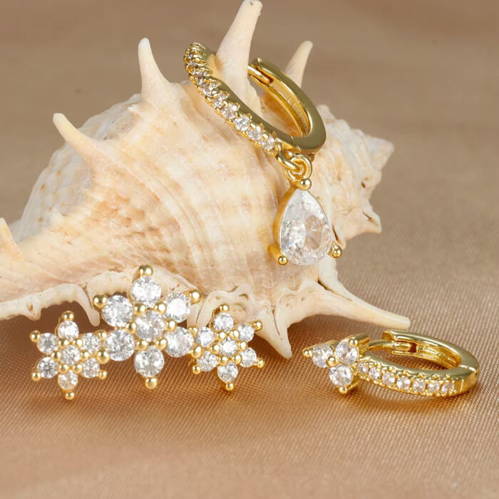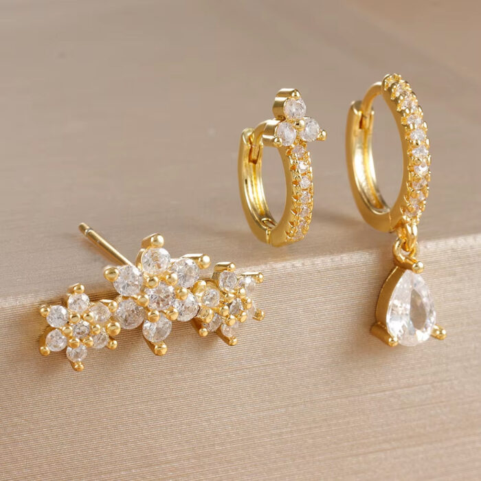Abellin set 3 σκουλαρίκια διάφανα με χρυσό από ανοξείδωτο ατσάλι. Ομορφιά και κομψότητα σε ένα ζευγάρι σκουλαρίκια που θα σας κάνει να τα λατρέψετε. Όλα τα υλικά είναι υποαλλεργικά και δεν μαυρίζουν. Κάθε κόσμημα από το κατάστημά μας κατασκευάζεται και επιλέγεται από εμάς για εσάς με αγάπη. Γι’ αυτό το κάθε κόσμημα που θα επιλέξετε, θα σας έρχεται σε κουτί συσκευασίας δώρου από το tesera.gr!