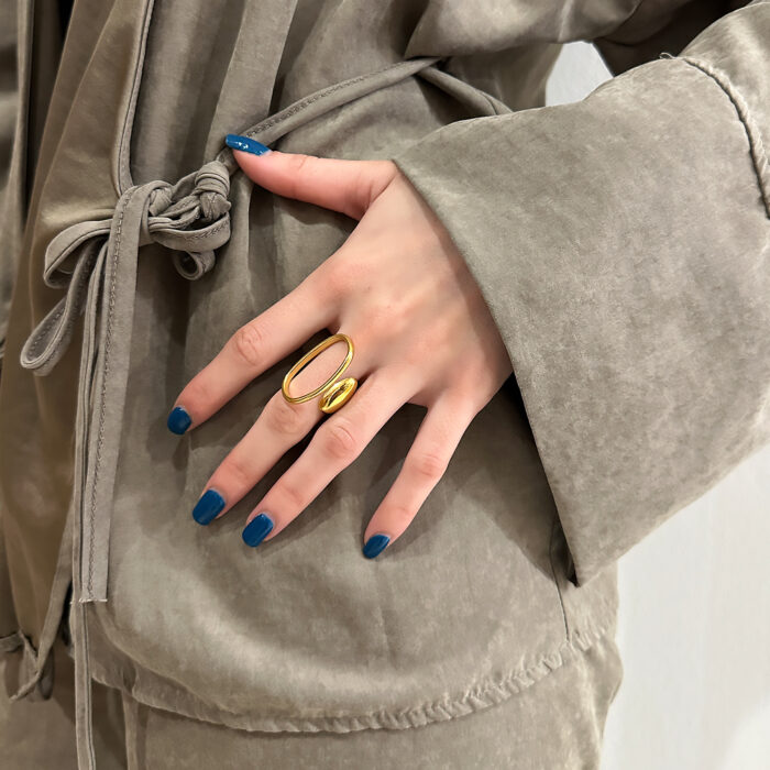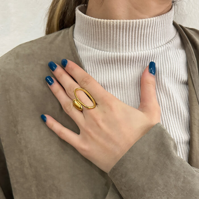 Δαχτυλίδι Abigail σε χρυσό μεγάλο απο ανοξείδωτο ατσάλι, με άνοιγμα για να εφαρμόζεται σε όλα τα δάχτυλα. Όλα τα υλικά είναι υποαλλεργικά και δεν μαυρίζουν. Κάθε κόσμημα από το κατάστημά μας κατασκευάζεται και επιλέγεται από εμάς για εσάς με αγάπη. Γι’ αυτό το κάθε κόσμημα που επιλέγετε, σας έρχεται σε κουτί συσκευασίας δώρου από το tesera.gr!