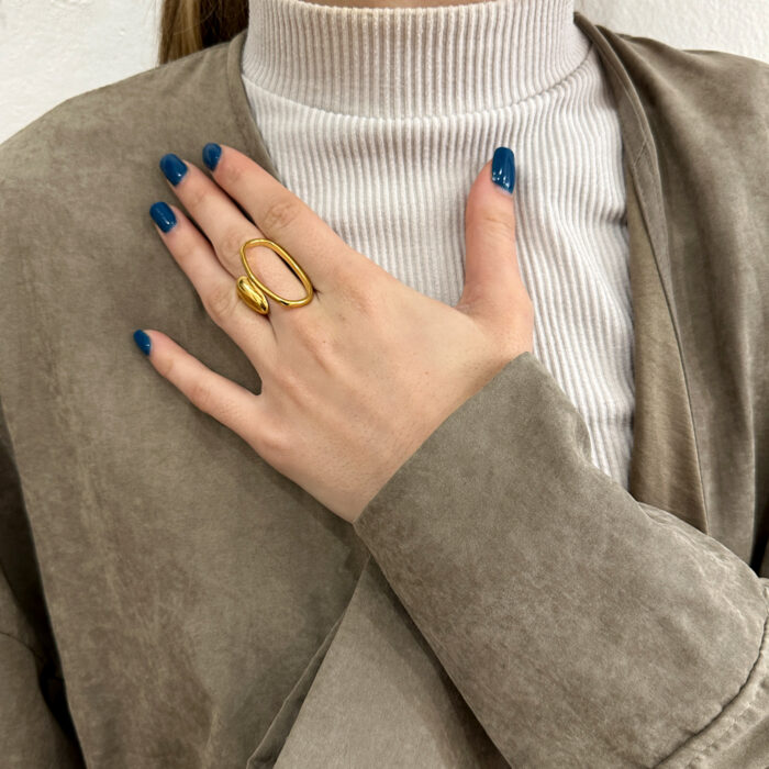 Δαχτυλίδι adonsya σε χρυσό από ανοξείδωτο ατσάλι, ρυθμιζόμενο για να εφαρμόζει σε όλα τα δάχτυλα, ιδανικό για όλες τις ώρες.