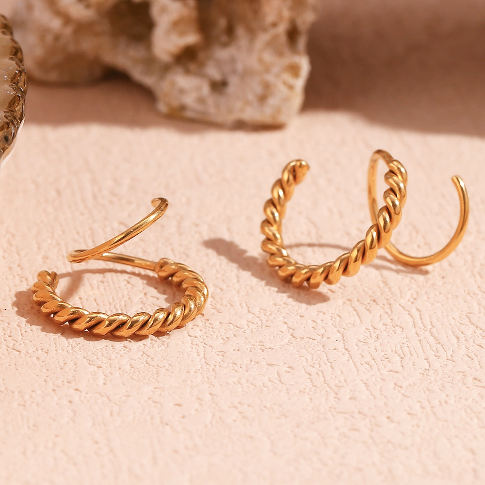 Achi σκουλαρίκια διπλός κρίκος σε χρυσό από ανοξείδωτο ατσάλι. Ομορφιά και κομψότητα σε ένα ζευγάρι σκουλαρίκια που θα σας κάνει να τα λατρέψετε. Όλα τα υλικά είναι υποαλλεργικά και δεν μαυρίζουν. Κάθε κόσμημα από το κατάστημά μας κατασκευάζεται και επιλέγεται από εμάς για εσάς με αγάπη. Γι’ αυτό το κάθε κόσμημα που θα επιλέξετε, θα σας έρχεται σε κουτί συσκευασίας δώρου από το tesera.gr!