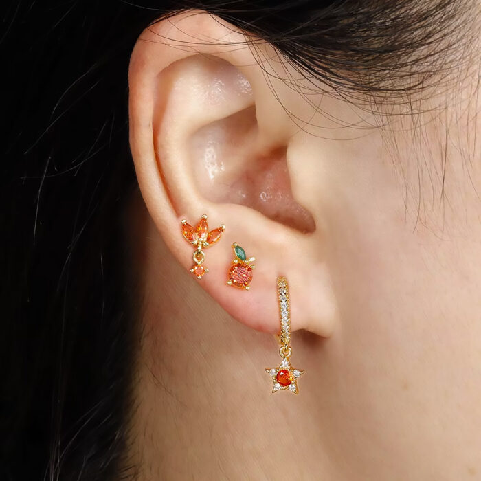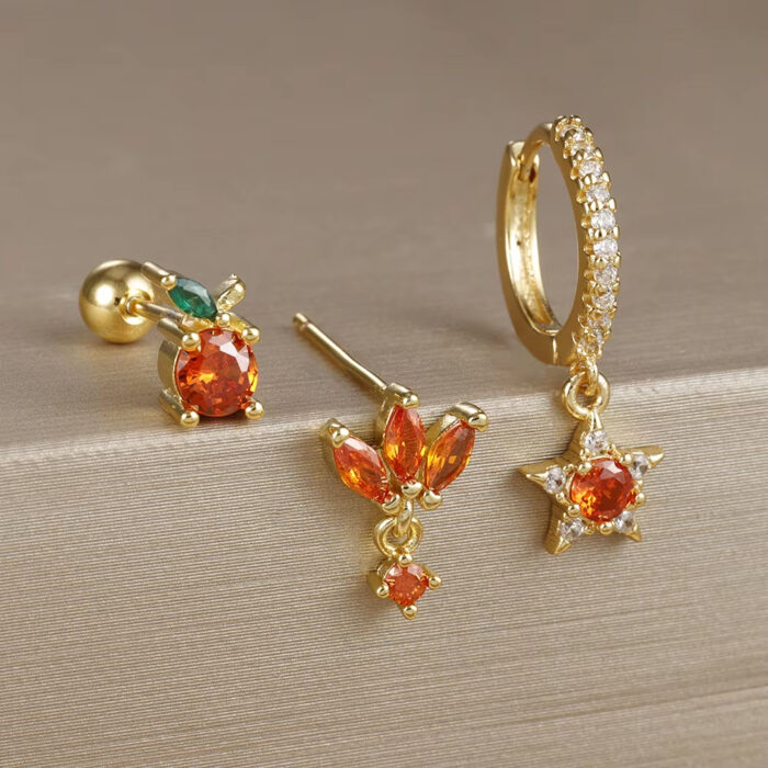 Alisa set 3 σκουλαρίκια σε χρυσό με ροδακινάκι πορτοκαλί ζιργκον και πράσινη λεπτομέρεια από ανοξείδωτο ατσάλι. Ομορφιά και κομψότητα σε ένα ζευγάρι σκουλαρίκια που θα σας κάνει να τα λατρέψετε. Όλα τα υλικά είναι υποαλλεργικά και δεν μαυρίζουν. Κάθε κόσμημα από το κατάστημά μας κατασκευάζεται και επιλέγεται από εμάς για εσάς με αγάπη. Γι’ αυτό το κάθε κόσμημα που θα επιλέξετε, θα σας έρχεται σε κουτί συσκευασίας δώρου από το tesera.gr!