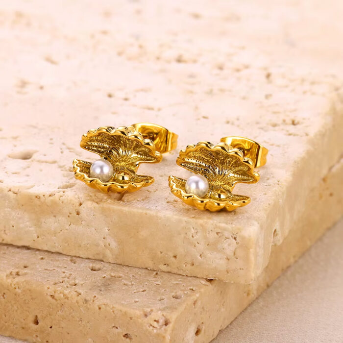 Aphrodite σκουλαρίκια κοχύλια με μαργαριταράκι σε χρυσό από ανοξείδωτο ατσάλι. Ομορφιά και κομψότητα σε ένα ζευγάρι σκουλαρίκια που θα σας κάνει να τα λατρέψετε. Όλα τα υλικά είναι υποαλλεργικά και δεν μαυρίζουν. Κάθε κόσμημα από το κατάστημά μας κατασκευάζεται και επιλέγεται από εμάς για εσάς με αγάπη. Γι’ αυτό το κάθε κόσμημα που θα επιλέξετε, θα σας έρχεται σε κουτί συσκευασίας δώρου από το tesera.gr!