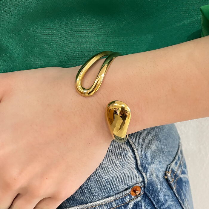 Bραχιόλι cuff Arcadia σε χρυσό από ανοξείδωτο ατσάλι. Με άνοιγμα Συνδυάζεται με όλα τα κοσμήματα σας. Όλα τα υλικά είναι υποαλλεργικά και δεν μαυρίζουν. Κάθε κόσμημα από το κατάστημά μας κατασκευάζεται και επιλέγεται από εμάς για εσάς με αγάπη. Γι’ αυτό το κάθε κόσμημα που επιλέγετε, σας έρχεται σε κουτί συσκευασίας δώρου από το tesera.gr!