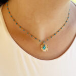 Κολιέ Ariel μπλε, με κρυσταλλάκι μπλε και κοχυλάκι άσπρο με χρυσές λεπτομέρειες, αλυσίδα με σμάλτο μπλε απο ανοξείδωτο ατσάλι. Η πιο μοντέρνα σειρά χειροποίητων κοσμημάτων που θα απογειώσει κάθε σας outfit. Ξεχώρισε σε κάθε σου εμφάνιση με την νέα συλλογή κοσμημάτων απο teseragr. Κάθε κόσμημα από το κατάστημά μας κατασκευάζεται και επιλέγεται από εμάς για εσάς με αγάπη. Γι’ αυτό το κάθε κόσμημα που επιλέγετε, σας έρχεται σε κουτί συσκευασίας δώρου από το tesera.gr!