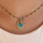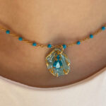 Κολιέ Ariel μπλε, με κρυσταλλάκι μπλε και κοχυλάκι σιελ με χρυσές λεπτομέρειες, αλυσίδα με σμάλτο μπλε απο ανοξείδωτο ατσάλι. Η πιο μοντέρνα σειρά χειροποίητων κοσμημάτων που θα απογειώσει κάθε σας outfit. Ξεχώρισε σε κάθε σου εμφάνιση με την νέα συλλογή κοσμημάτων απο teseragr. Κάθε κόσμημα από το κατάστημά μας κατασκευάζεται και επιλέγεται από εμάς για εσάς με αγάπη. Γι’ αυτό το κάθε κόσμημα που επιλέγετε, σας έρχεται σε κουτί συσκευασίας δώρου από το tesera.gr!