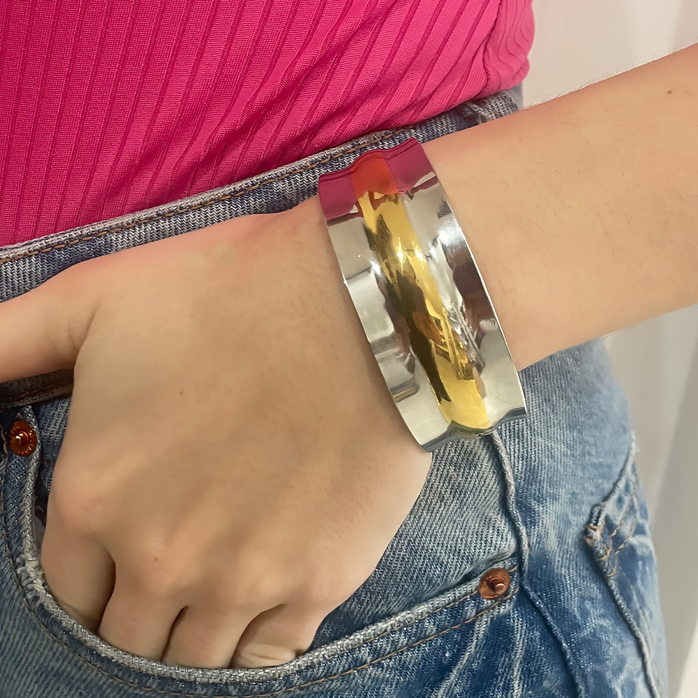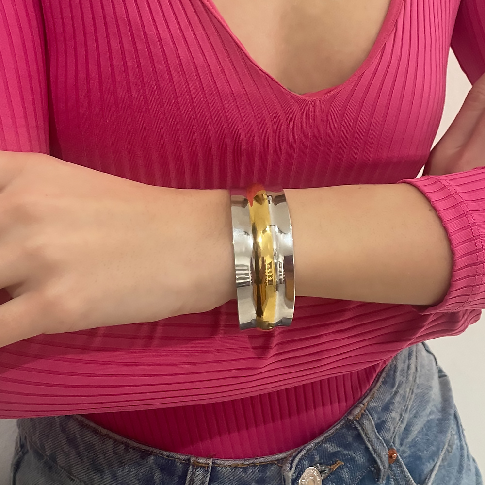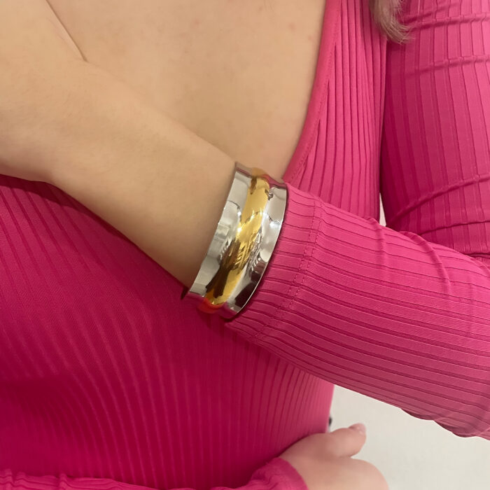 Bραχιόλι adelaida σε ασημί με χρυσό από ανοξείδωτο ατσάλι, με ανοιγμα εφαρμόζει σε όλα τα χέρια. Συνδυάζεται με όλα τα κοσμήματα σας. Όλα τα υλικά είναι υποαλλεργικά και δεν μαυρίζουν. Κάθε κόσμημα από το κατάστημά μας κατασκευάζεται και επιλέγεται από εμάς για εσάς με αγάπη. Γι’ αυτό το κάθε κόσμημα που επιλέγετε, σας έρχεται σε κουτί συσκευασίας δώρου από το tesera.gr!