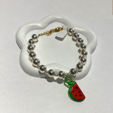Watermelon pearls με ασημί πέρλες και χρυσές λεπτομέρειες με κρεμαστό καρπουζάκι γυάλινο από ανοξείδωτο ατσάλι. Συνδυάζεται με όλα τα κοσμήματα