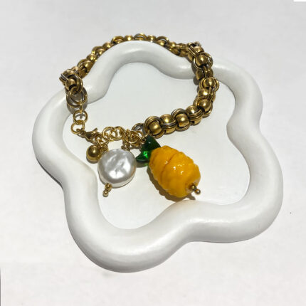 Pineapple βραχιόλι με ιδιαίτερη αλυσίδα χρυσή με ασημί λεπτομέρειες και κρεμαστό ανανά γυάλινο από ανοξείδωτο ατσάλι. Συνδυάζεται με όλα τα